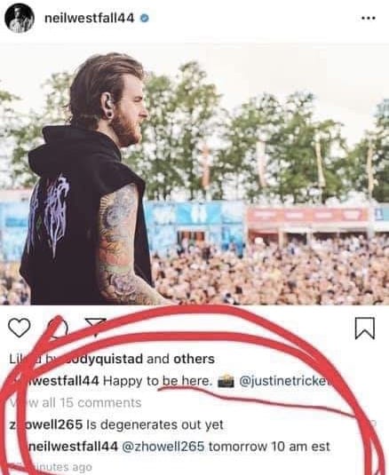 Last night Neil Westfall replied to an Instagram post claiming a brand new song “Degenerates” would be released today at 10amEST.