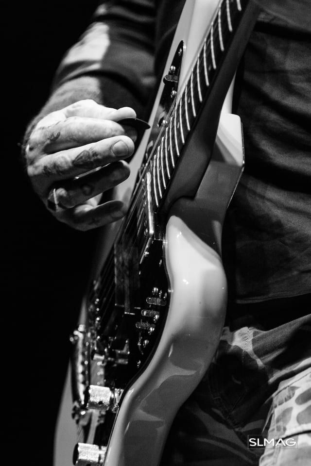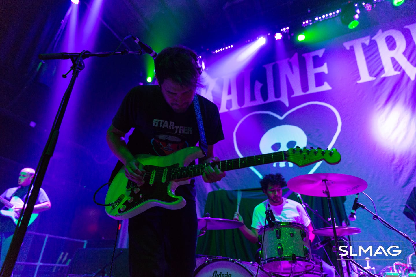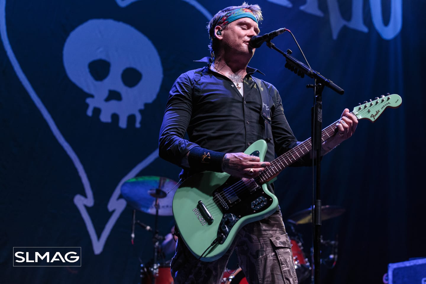 Finally, after much anticipation and only a little impatience on the part of the audience members, the three men we were waiting for walked out on stage. Unfortunately, drummer Derek Grant is taking time off to handle some health issues, but Jarrod Alexander is filling his seat for this tour. Alexander is long vetted by the industry and has worked with guitarist Matt Skiba in the past. The chemistry was easy and while Grant was missed and we all wish him an easy recovery, Alexander did a splendid job filling out the Trio and giving us the show we all came for. Skiba and bassist Dan Andriano seemed perfectly in their element, falling back into step after so long as though they’ve been together every day since the end of their last tour. We all know this to not be the case, as both men are fond of their side projects, to the equal delight and anxiety of those die-hard fans mentioned at the open of this article. Once Skiba was invited to a permanent position with Blink 182 fans were all but convinced we would never see a new Alkaline Trio album again, let alone a tour. Thankfully this is not the case, and the Trio has crafted another killer album, a perfect evolution on their ever-changing but instantly recognizable sound. Better yet, Skiba and Andriano are synched and perfectly Alkaline Trio despite the time apart. The night was all about the music, with little filler between songs and zero banter, unlike with tours past. This might be a side-effect of time constraints: they have a long and loved discography with eight studio albums, and many more splits and b-sides throughout the years and they chose music from every era. At the time of the show, two songs from the new album had been released and everybody in the house was able to sing along to both of them. A failed stage dive attempt by an overly-eager concert-goer did prompt a mini-lesson on how to properly stage dive without harming yourself or others (remember kids, it’s up and out!) so be sure to get it right if you make it to a future gig. Unless you want to be admonished on stage, that is.