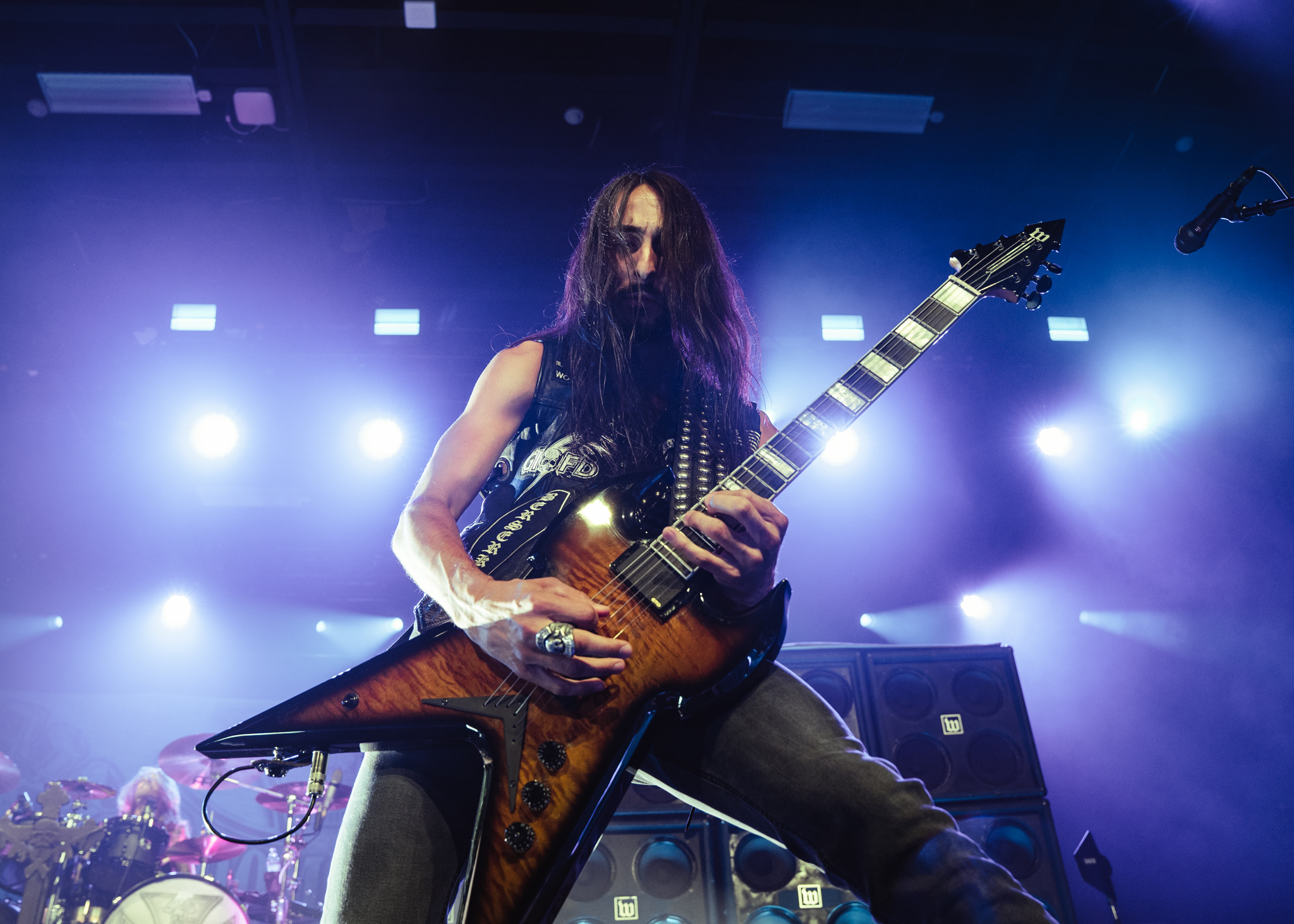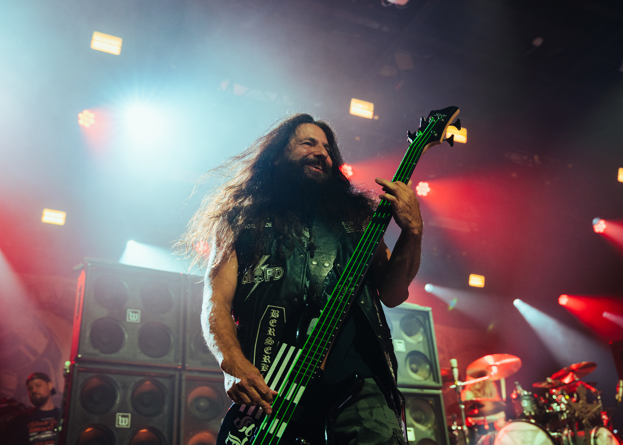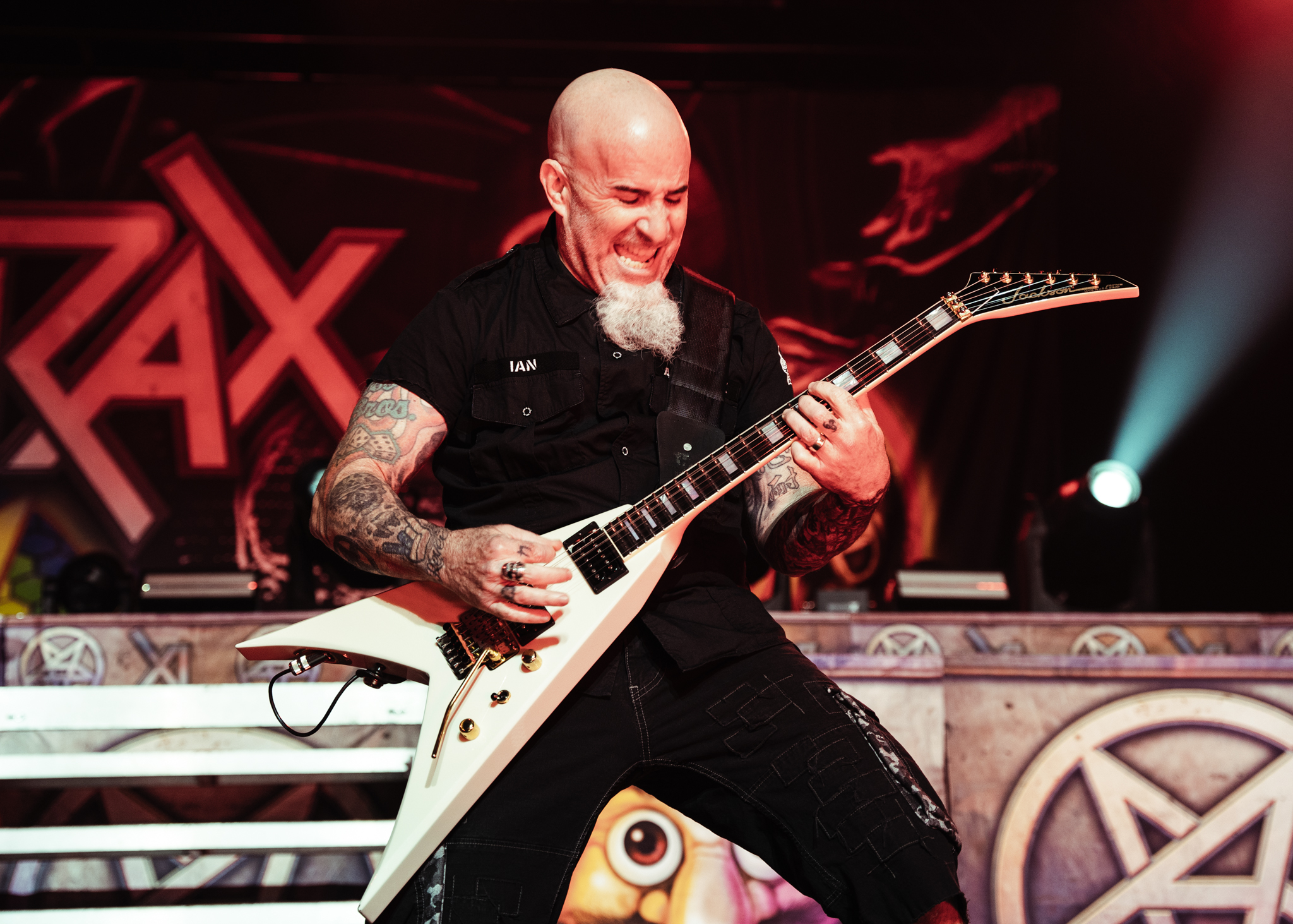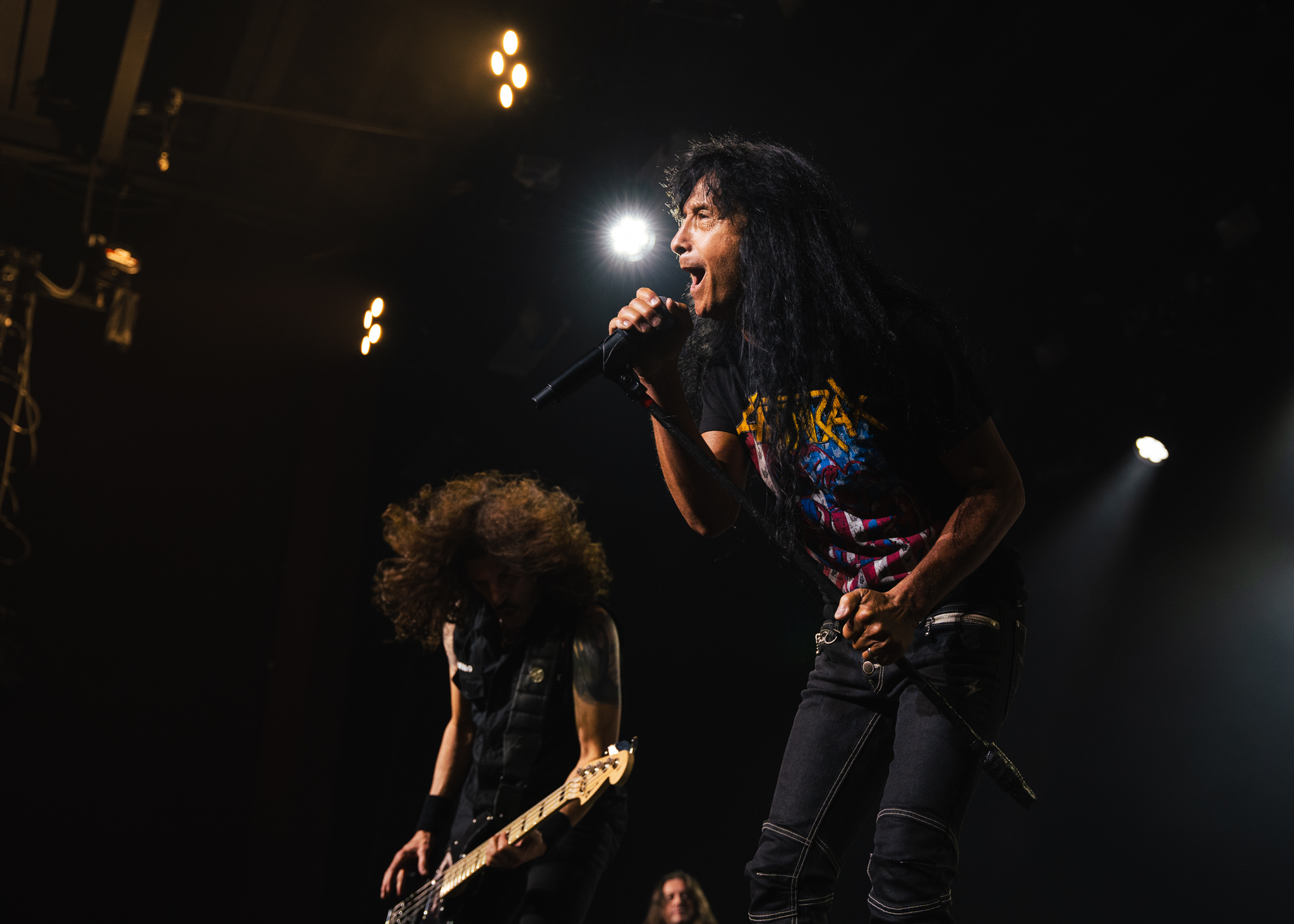To finish the night of heavy distortion was none other than Anthrax, the thrash metal legends who helped bring in a new era of metal in the 1980’s filled with fast riffs and blaring vocals.This year they are celebrating their 40th anniversary (well 41st according to Scott Ian) and are making sure everyone remembers what they are all about. Before they play, a small video is displayed on a curtain blocking the stage that highlights all of their accomplishments and feats over the past forty years. This video includes music industry and metal veterans such as Dee Snider, Gene Simmons, John Carpenter, Chuck D and countless others who spoke about Anthrax’s legacy as one of the top bands of the last 40 years. As soon as the video ends after a supercut of all the guests saying the band’s name, the curtain is dropped to reveal the band members who immediately get to what they are best known for: fast riffs, pounding drums and screaming vocals from vocalist Joey Belladonna. While some may think that after forty years the band may not be able to match the high-intensity of years past, the band instantly proved any of those doubters wrong. Belladonna’s voice sounds as if it has not aged at all since the release of their debut album Fistful of Metal back in 1984. His screams were pitch perfect and filled with just as much volume as you would expect to hear on a studio recording from the 80’s. Guitarist, and founding member, Scott Ian hasn’t lost a step as well, he made sure to jump around on stage and pierce concert-goers souls as he would stare at them during intense moments of a song, making solid eye contact until he saw fit to resume running around on stage. Bassist Frank Bello would climb on top of platforms, towards the back of the stage, and strut from one side to the other as drummer Charlie Benante would pound away, keeping the band’s exhilarating tempo going. Lead guitarist Jon Donais would creep in the back until it was time to shred a solo, to which he would then prop a leg onto the front of the stage’s platforms and melt crowd members ears with fast-paced shredding that Anthrax is revered for. Ian talked to the crowd in Gary and spoke about how their first time playing in Indiana was at the now demolished Star Plaza Theatre in Merrillville, Indiana when they opened for KISS in 1988 and how that was a big tour for them at the time. Their setlist was filled with classic songs from their discography including “I am the Law,” “Cry For the Indians,” “Caught In A Mosh,” “Madhouse,” and even a recreation of “Bring the Noise” led by Scott Ian on vocals.