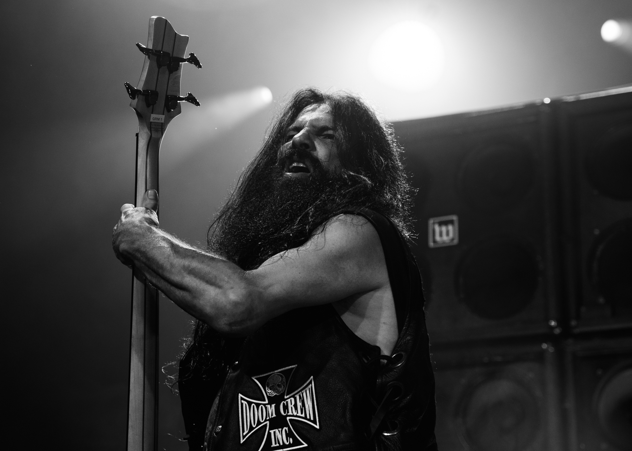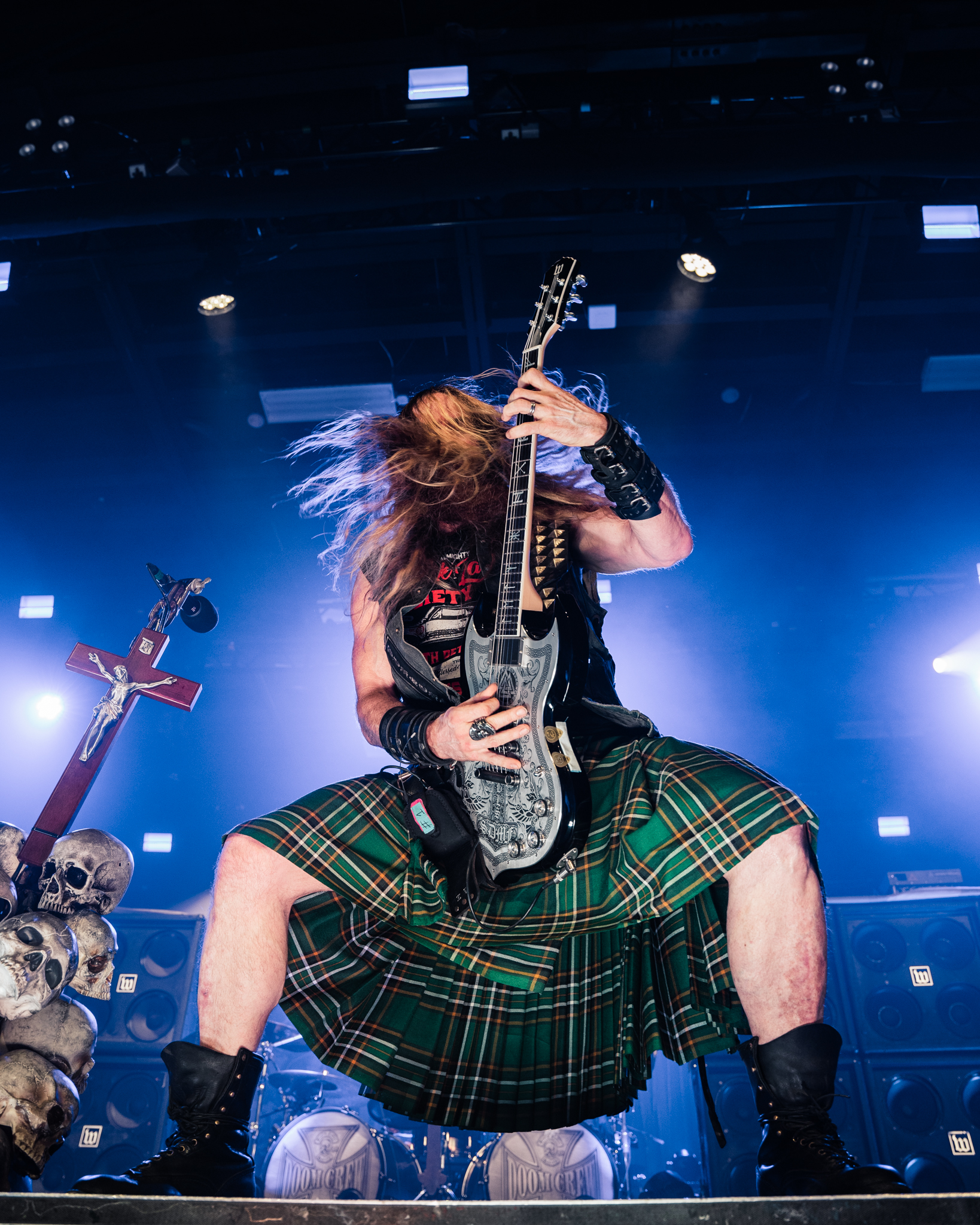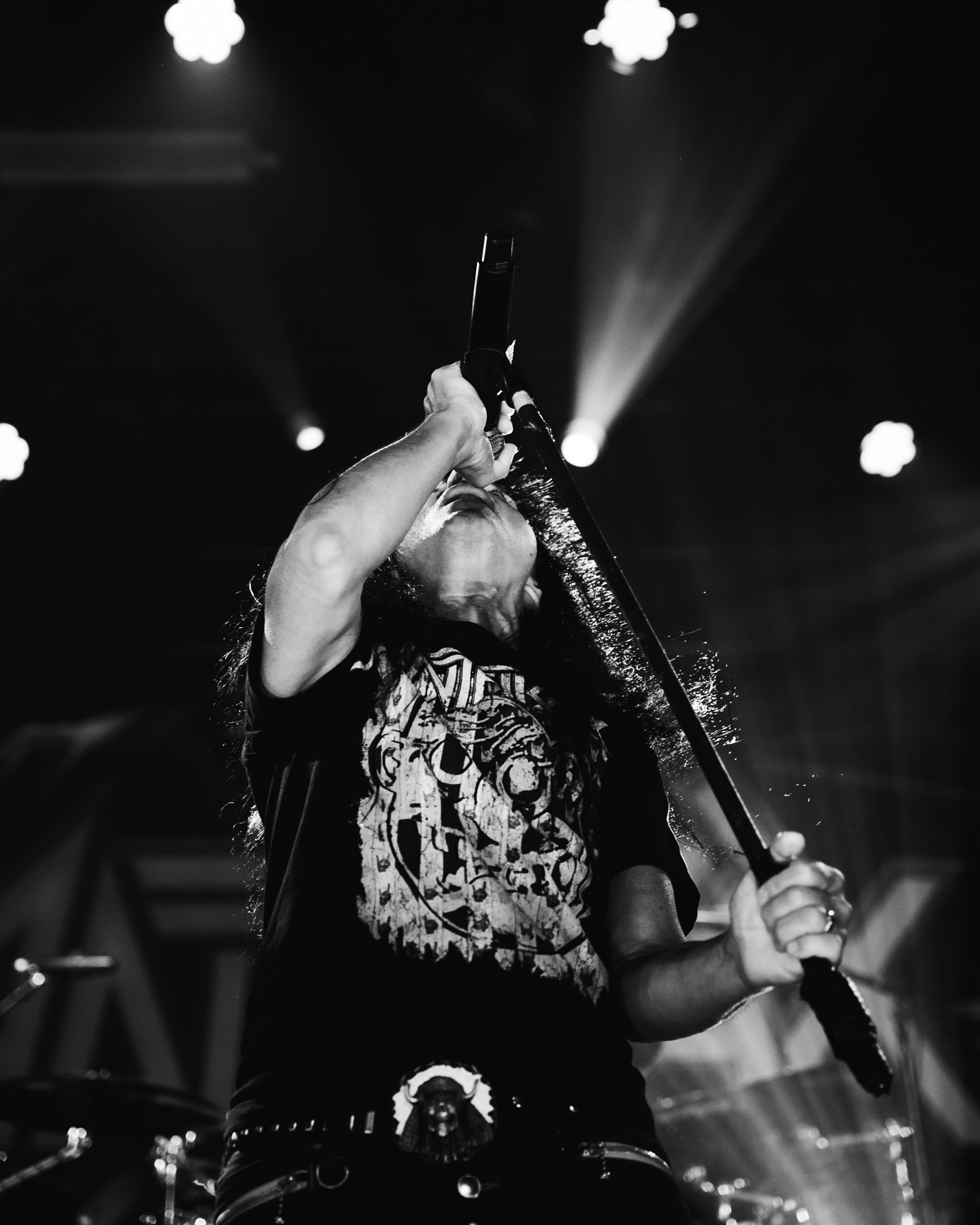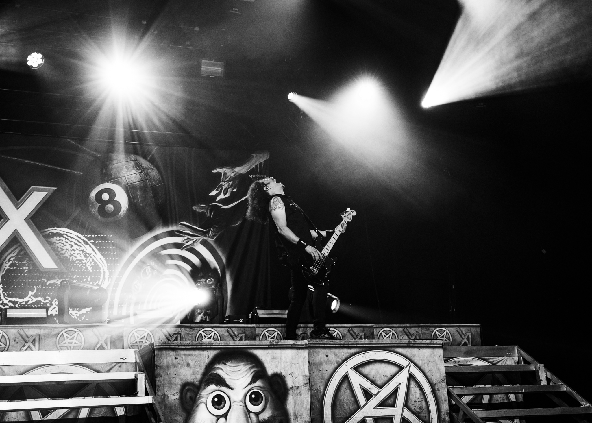 Black Label Society, the band that is a staple among bikers across the nation and led by former lead guitarist of Ozzy Osbourne, Zakk Wylde, took to the stage next. The members approached the crowd donning biker vests, chains and studded bracelets, while Zakk’s area of the stage contained a small platform with a microphone atop a pile of skulls with a crucifix attached to complete the gothic appearance. While Hatebreed would chat with the crowd and have brief moments of downtime in between songs, Black Label Society focused on riffs and shredding. Having very little time for talk gave the crowd more time to headbang and look in awe as Zakk Wylde would perch on top of his small platform during solos while erratically swaying back-and-forth with his hair jumping from one side to another. They briefly spoke to their “Gary Chapter” of the Black Label Society and thanked them for coming out and how excited they are to be on tour with Hatebreed and Anthrax.