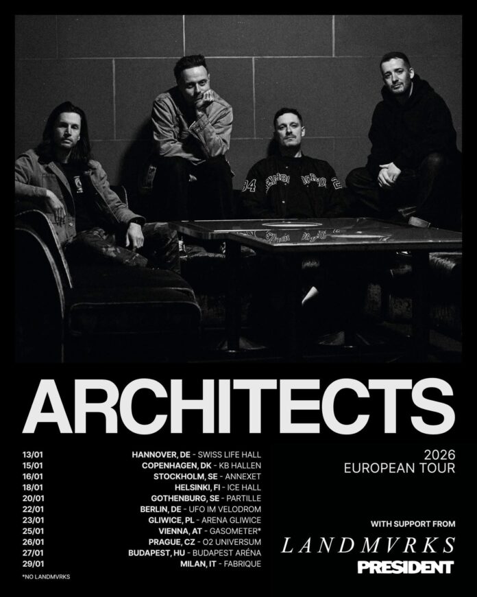 British metalcore giants Architects have announced their 2026 European Tour, and they’re bringing along a stacked lineup of support acts, including LANDMVRKS and the highly anticipated first-ever tour from PRESIDENT.