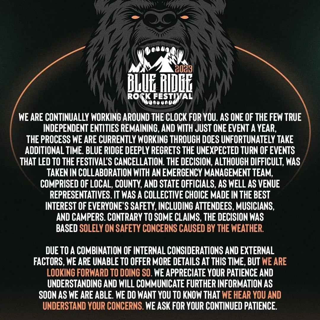 Blue Ridge Rock Festival Release Statement Following 2023 Festival