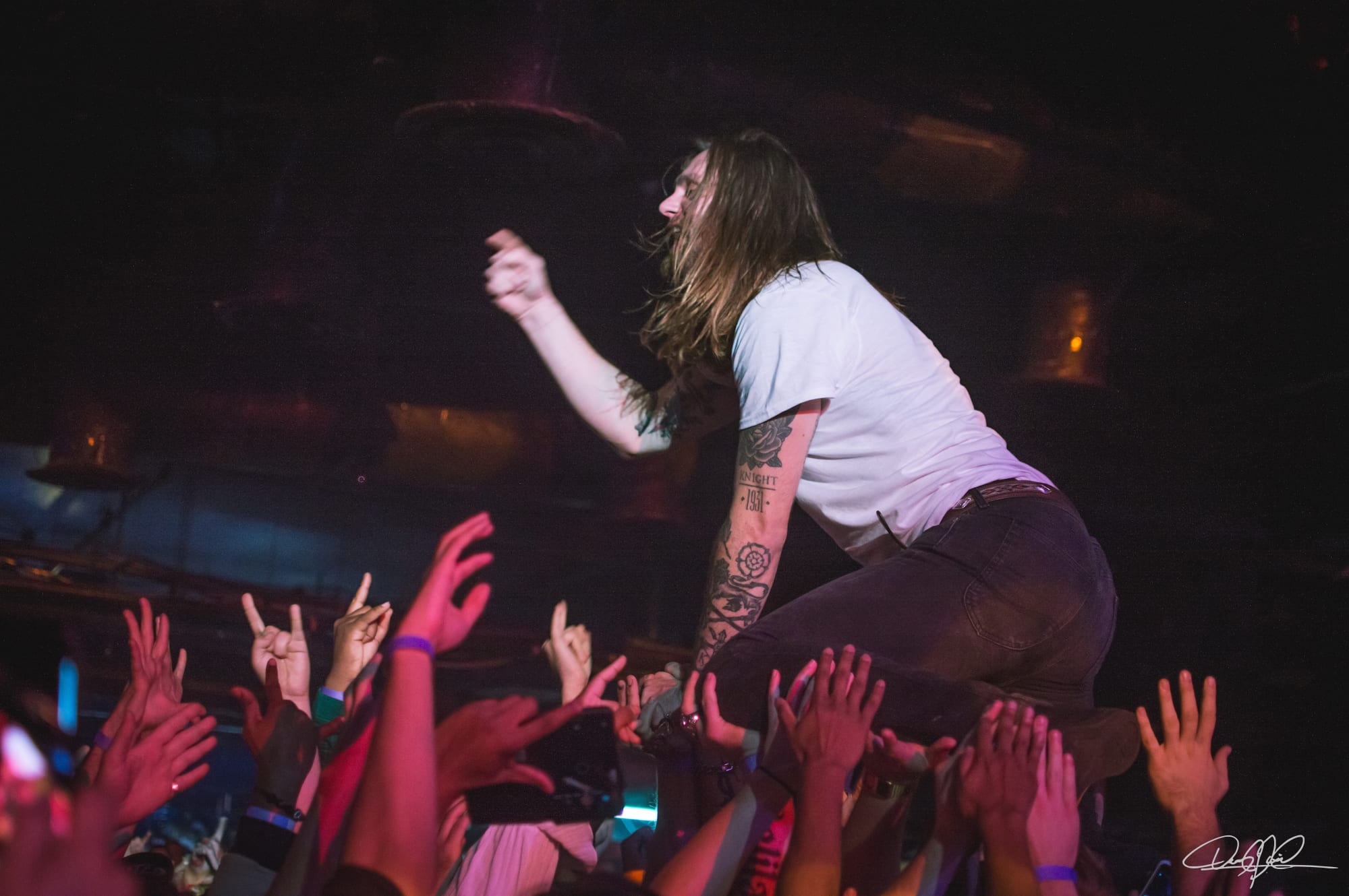 While She Sleeps took the stage next and ripped a short but sweet set full of songs from their late 2016 release “You Are We”, followed by vocalist Loz Taylor climbing up on the railing to the VIP area, walking the length of said railing, then fighting his way through the crowd to get back to the stage.