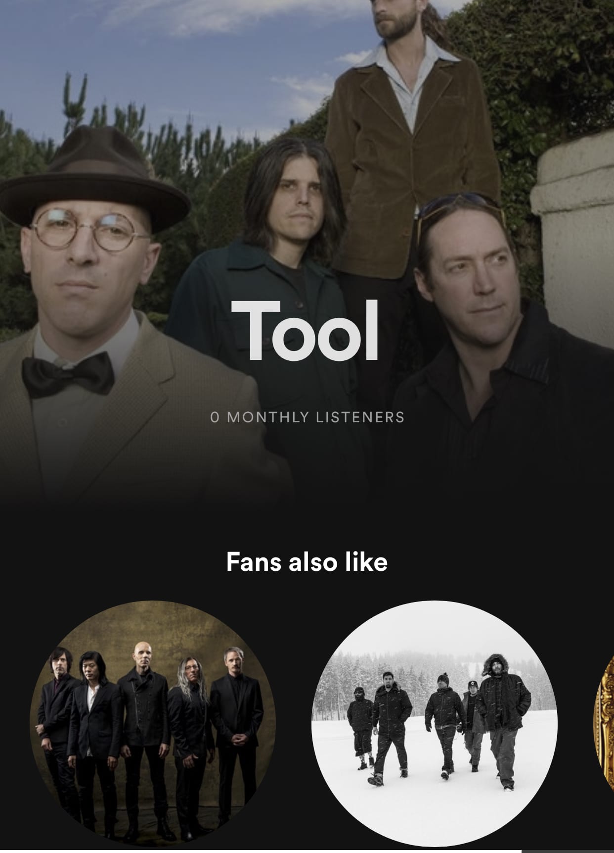 It seems TOOL has officially decided it was time to join the streaming world. Being one of the few artists that were still not on such platforms at Spotify and Apple Music an artist profile for the band has now been created on both platforms. Though no music has been added to the profiles, there is however a group photo has been added.