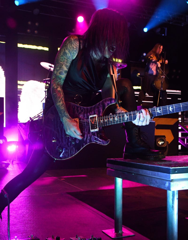Kicking off the show was Skillet drummer Jen Ledger’s project Ledger. Jen has stepped out from behind the kit to be in your face with her incredible vocal range and dueling guitar riffs. Though Jen and her band only played a quick 7 song set of both new and old tracks it’s safe to say the crowd wanted more. One fan even yelled out “We’d rather see you!” during a break between songs and Jen thanked the crowd for being their and asked if they were ready for “From Ashes To New”. Ledger wrapped up the set with the single “Not Dead Yet” which had fans singing at the top of their lungs with fists pumping through out! It’s safe to say Ledger has quite the following here in Charlotte North Carolina.