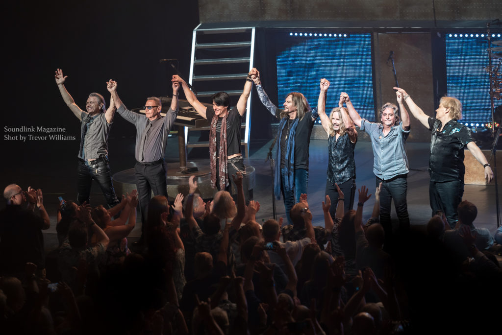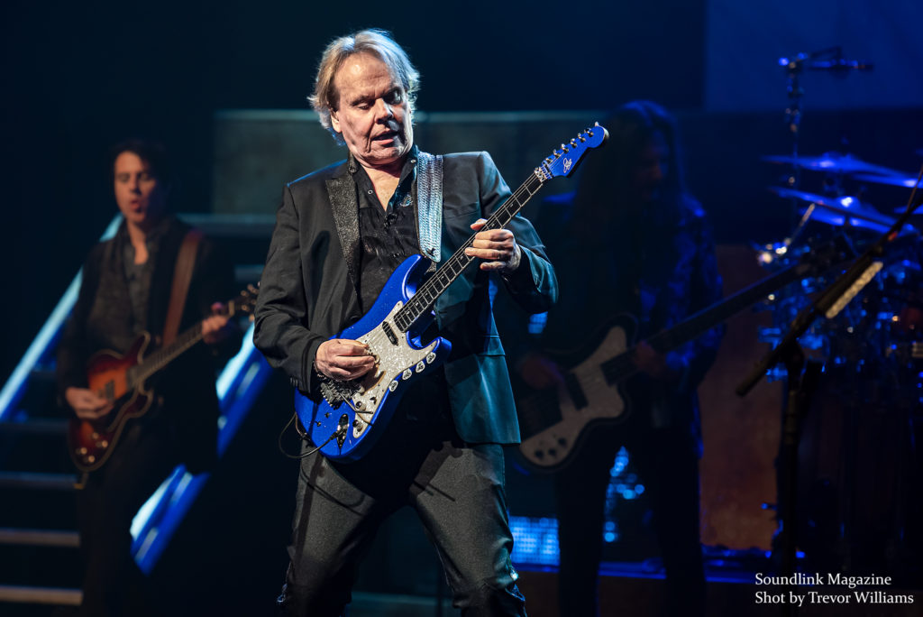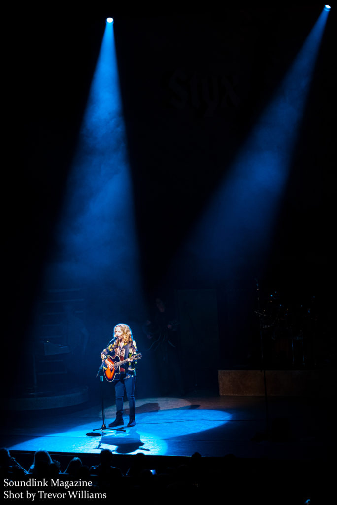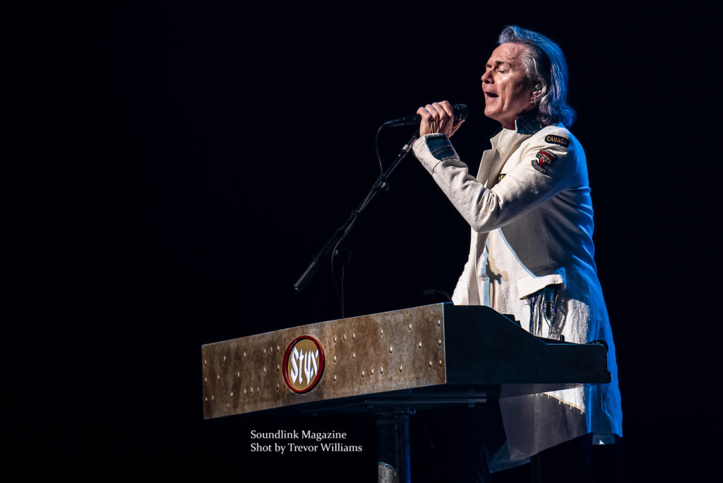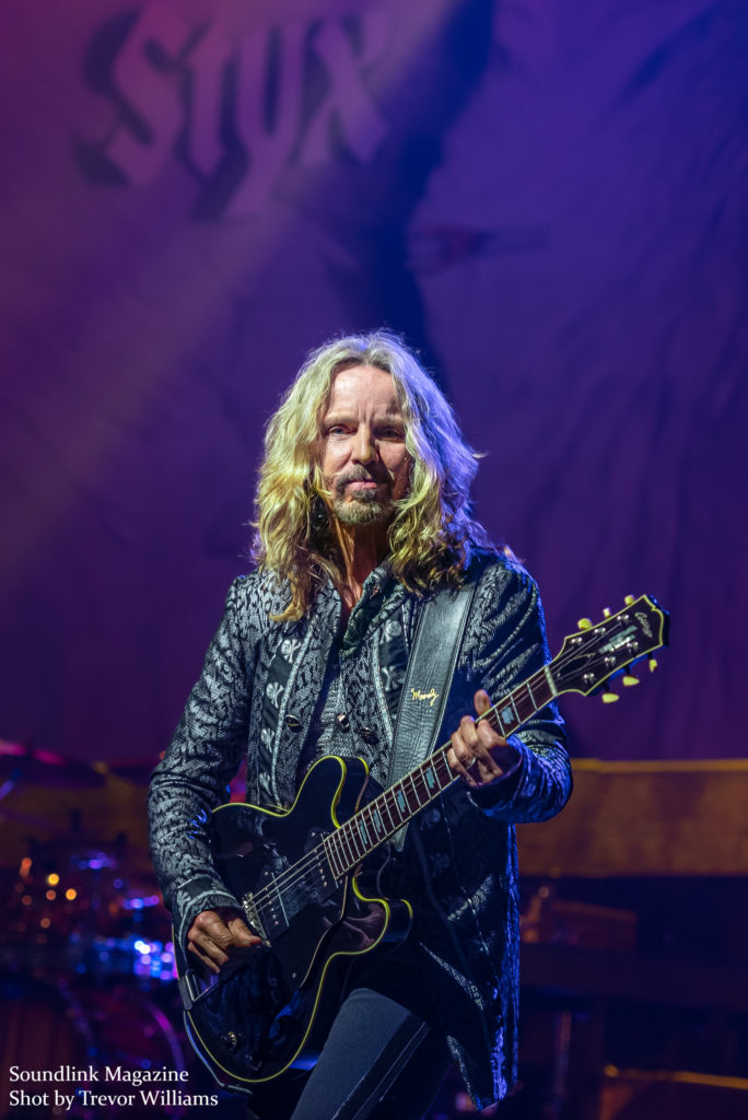 Tommy Shaw is still one of the most enthusiastic front man in music and can work a crowd like no other. Often coming out on front of the microphone to get as close to the fans as possible and interacting with them throughout the show. With legs kicks above his head, jumps, and kneeling down at the edge of the stage, it is quite impressive to see. His voice also has not lost any power over the years either. Each song was sung identical to the albums to all the fans delight.