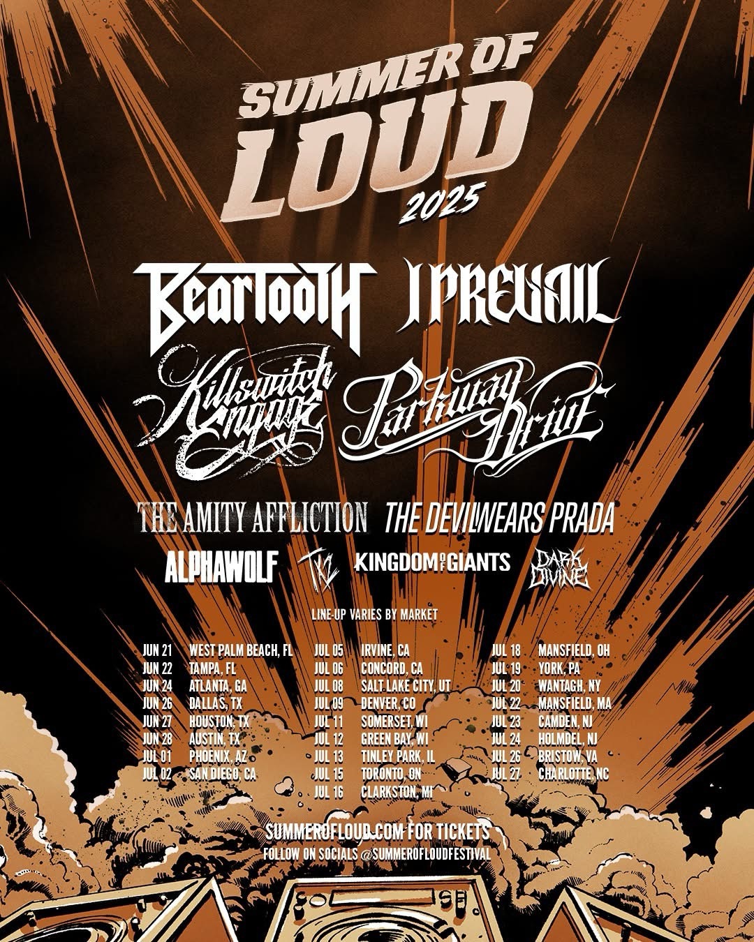 The summer of 2025 is set to get louder than ever with the announcement of the Summer of Loud festival tour, featuring a powerhouse lineup of some of the biggest names in modern metal and hardcore. Headlined by Beartooth, I Prevail, Killswitch Engage, and Parkway Drive, the festival will also feature The Amity Affliction, The Devil Wears Prada, Alpha Wolf, Kingdom of Giants, and Dark Divine.