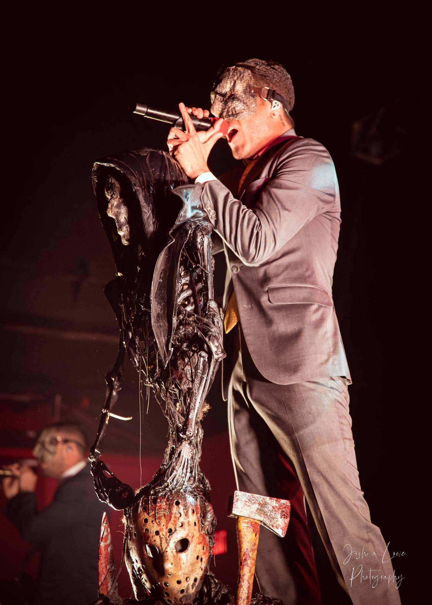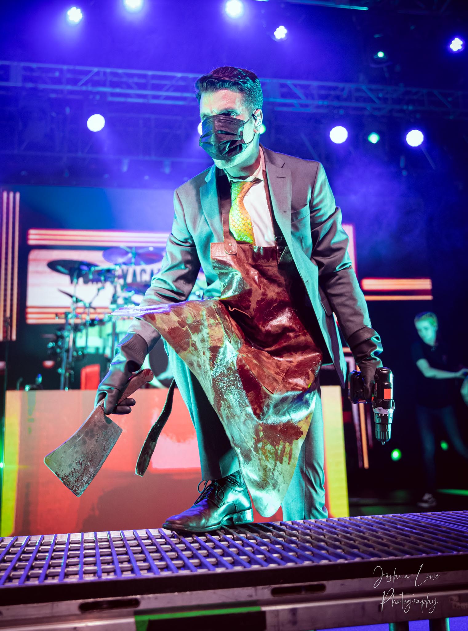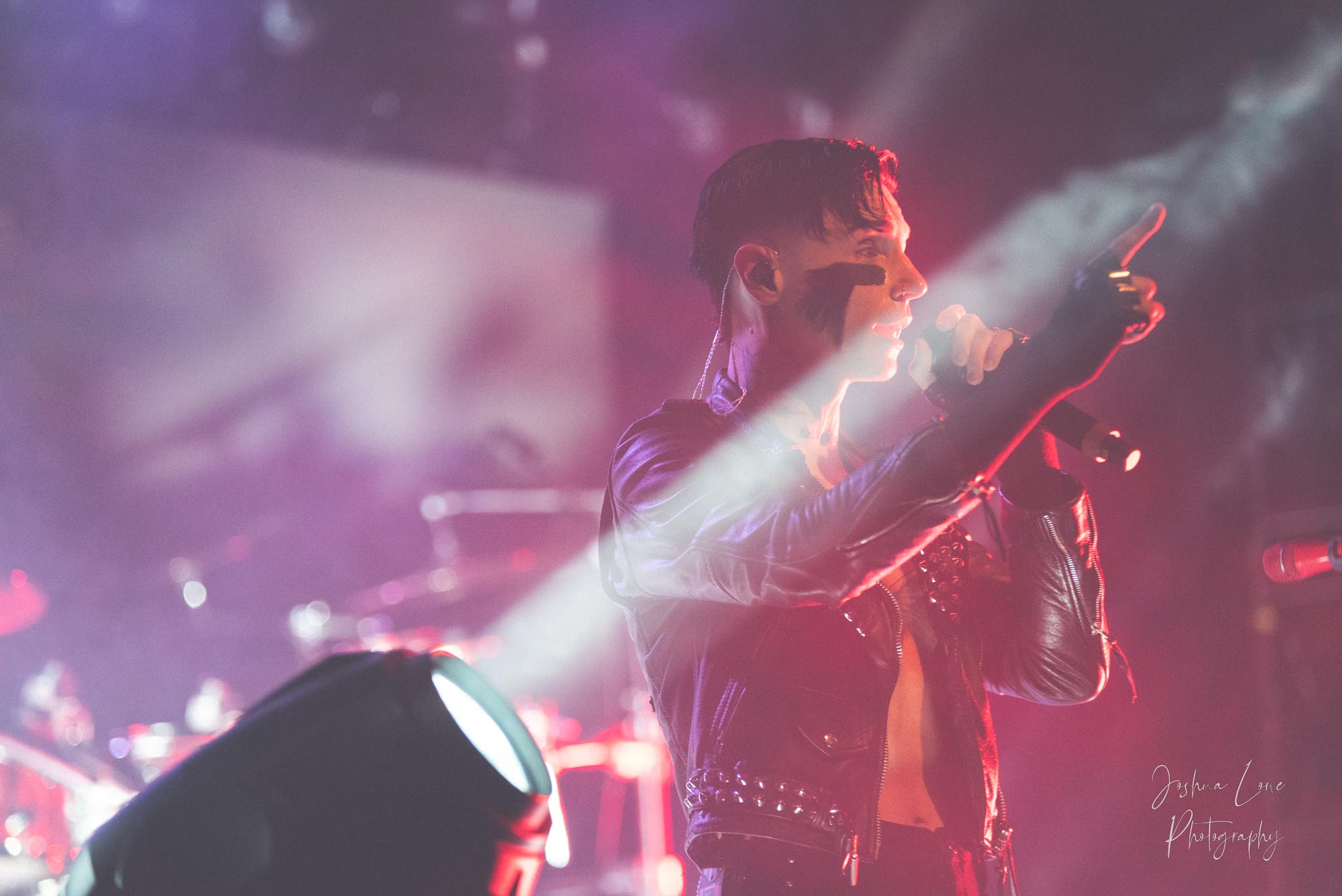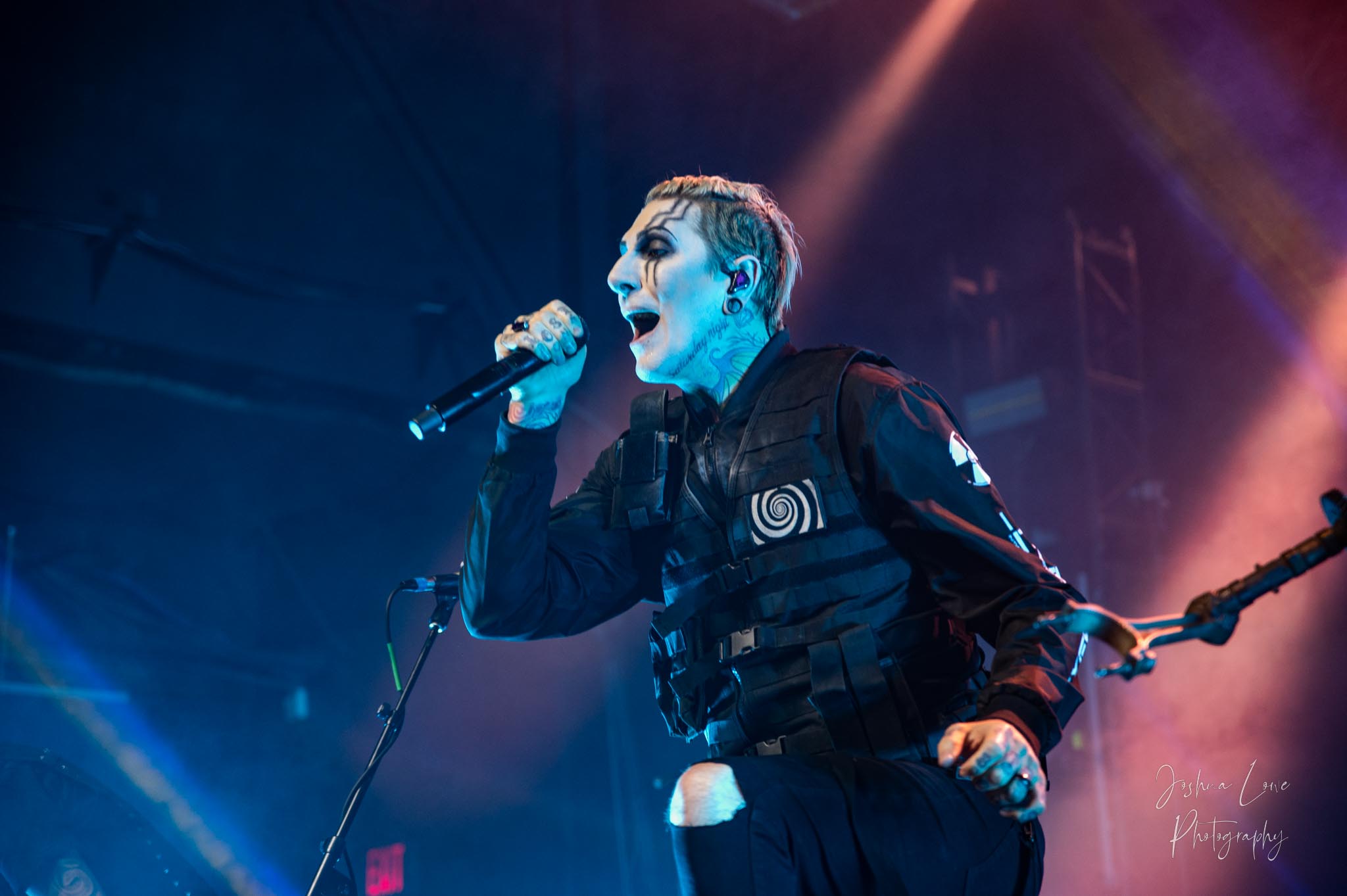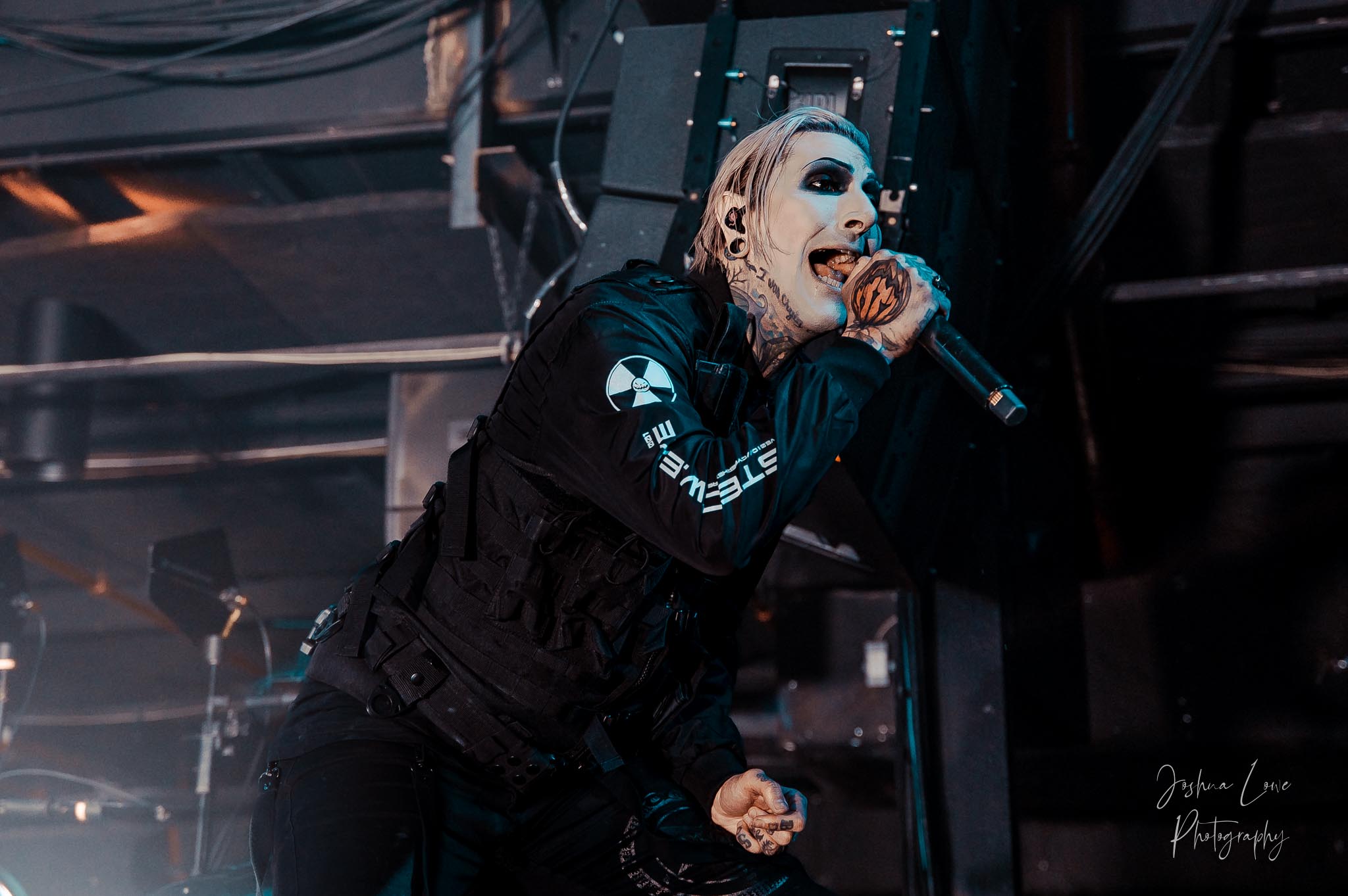Ice Nine Kills was the last band to hit the stage in Charlotte North Carolina. One thing that caught my attention was the attention to detail INK puts in their show. For example, as any Ice Nine Kills fan would know INK front man Spencer Charnas is a MASSIVE scream fan. They have a song about Scream and you’ll see Ghostface on INK Merch as well. But one thing I noticed and knew the show was about to start, was behind bands before the lights went down. A song was playing over the speakers and any horror fan would recognize the tune, they my not recognize the artist, but they’d know the tune. It’s Nick Cave & The Bad Seeds: Red Right Hand. This song was featured in the original movie. Once the lights went out you hear the opening dialog from the band’s latest album going straight into the band’s title track from the album “Welcome to Horrorwood”. The night was filled with 12 horrifying tracks spanning across the band’s 3 albums.