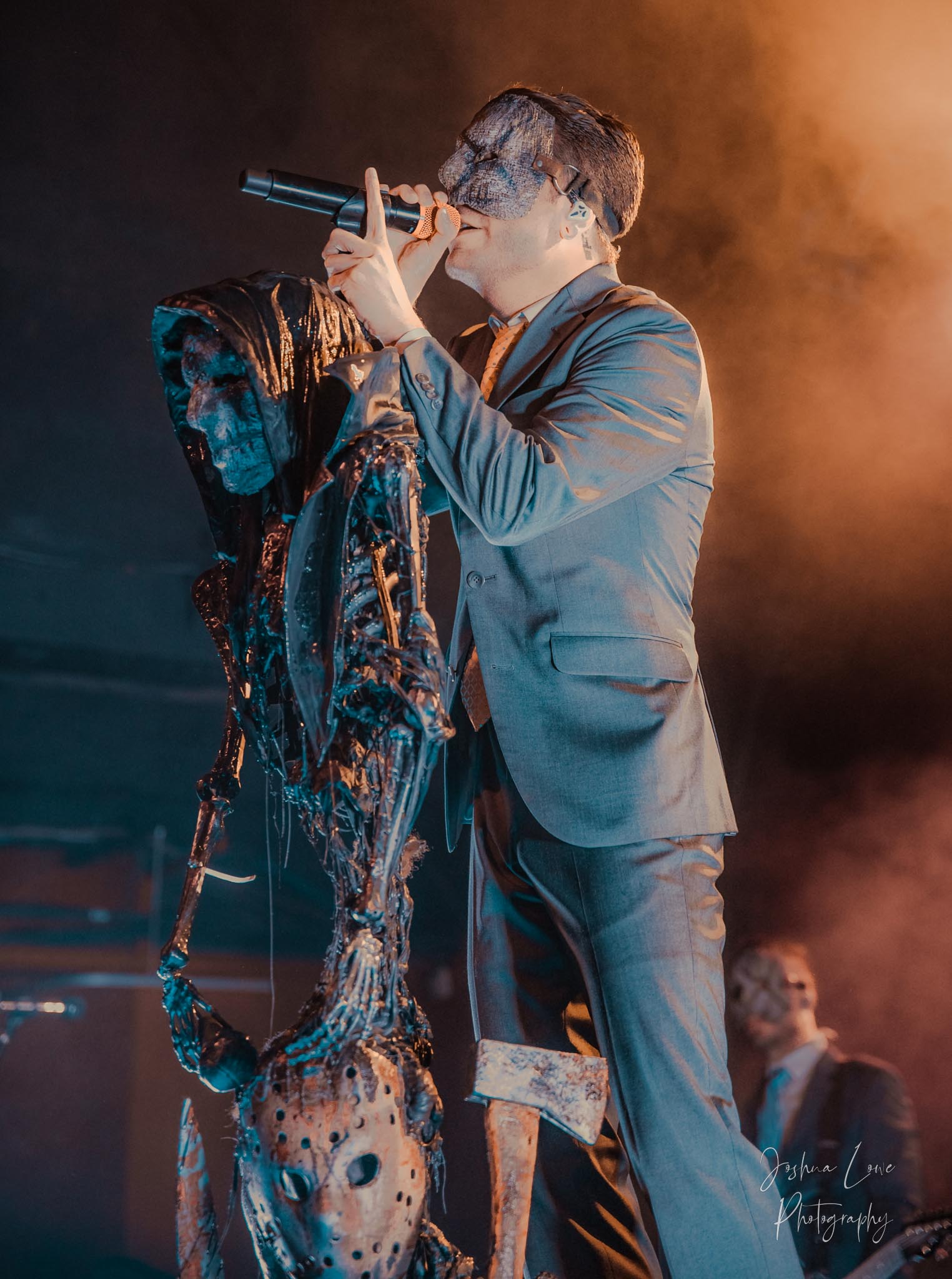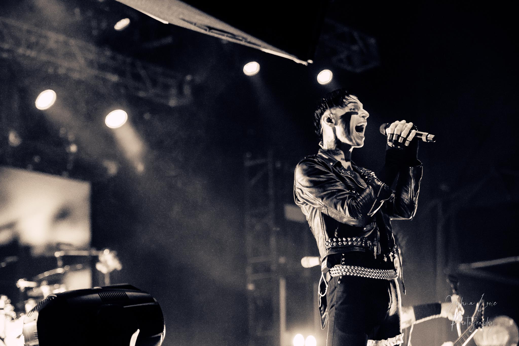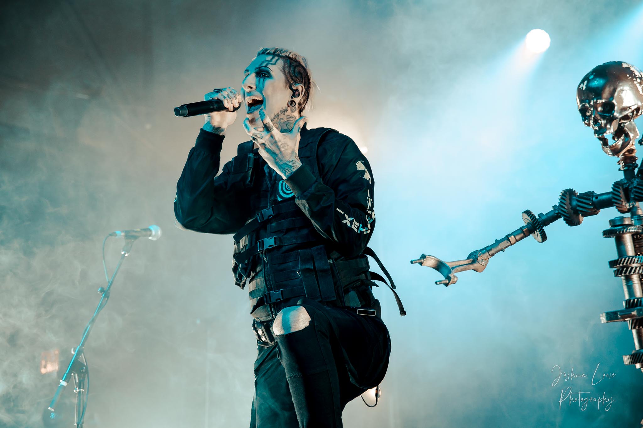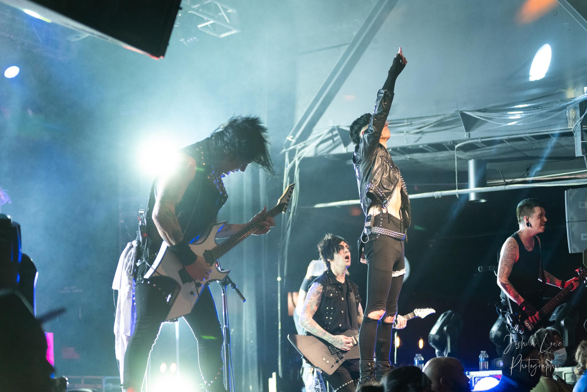 Ice Nine Kills was the last band to hit the stage in Charlotte North Carolina. One thing that caught my attention was the attention to detail INK puts in their show. For example, as any Ice Nine Kills fan would know INK front man Spencer Charnas is a MASSIVE scream fan. They have a song about Scream and you’ll see Ghostface on INK Merch as well. But one thing I noticed and knew the show was about to start, was behind bands before the lights went down. A song was playing over the speakers and any horror fan would recognize the tune, they my not recognize the artist, but they’d know the tune. It’s Nick Cave & The Bad Seeds: Red Right Hand. This song was featured in the original movie. Once the lights went out you hear the opening dialog from the band’s latest album going straight into the band’s title track from the album “Welcome to Horrorwood”. The night was filled with 12 horrifying tracks spanning across the band’s 3 albums.