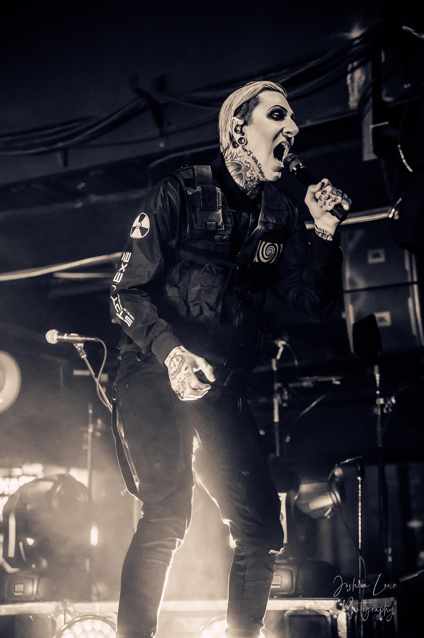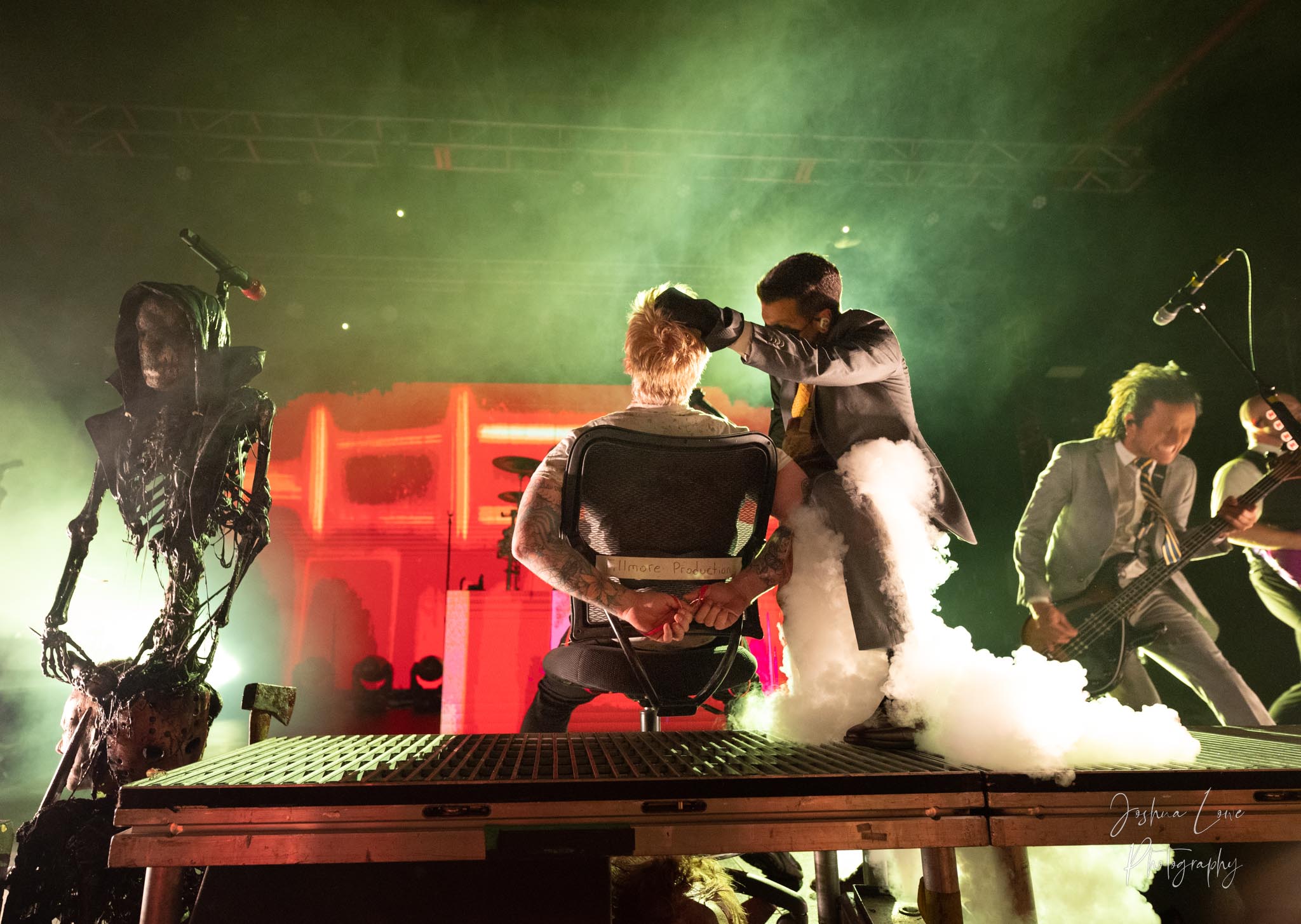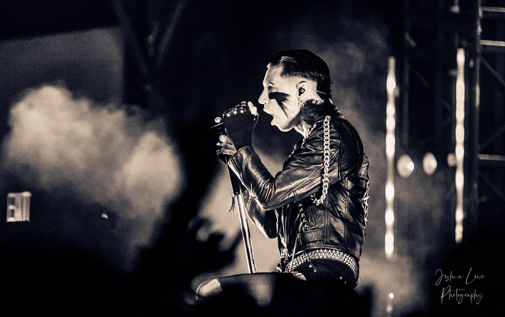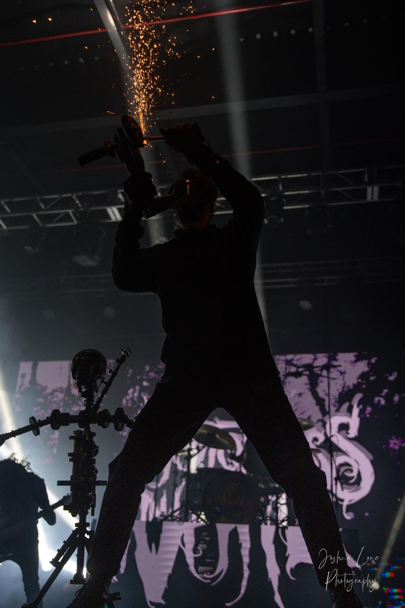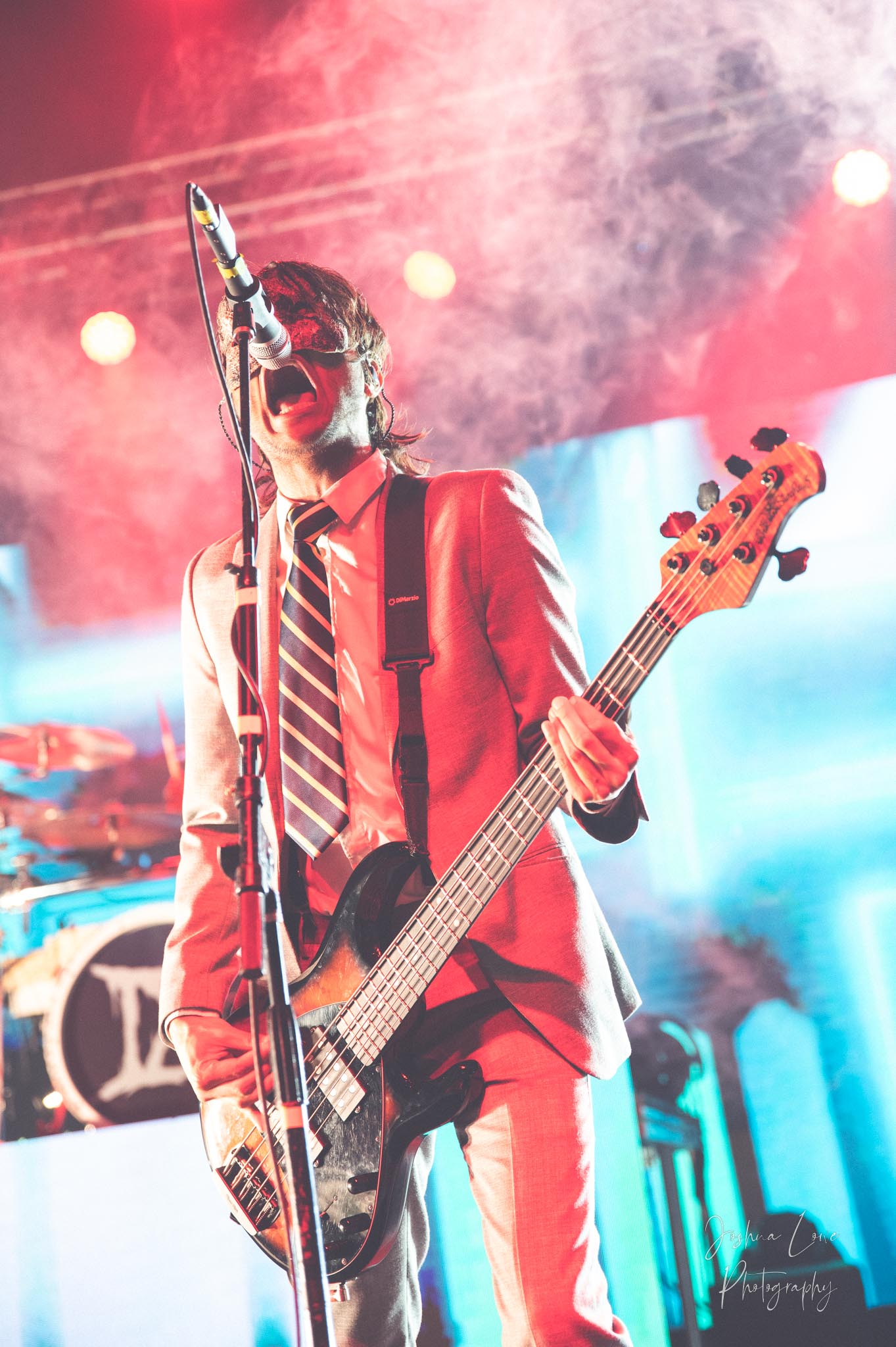 Ice Nine Kills was the last band to hit the stage in Charlotte North Carolina. One thing that caught my attention was the attention to detail INK puts in their show. For example, as any Ice Nine Kills fan would know INK front man Spencer Charnas is a MASSIVE scream fan. They have a song about Scream and you’ll see Ghostface on INK Merch as well. But one thing I noticed and knew the show was about to start, was behind bands before the lights went down. A song was playing over the speakers and any horror fan would recognize the tune, they my not recognize the artist, but they’d know the tune. It’s Nick Cave & The Bad Seeds: Red Right Hand. This song was featured in the original movie. Once the lights went out you hear the opening dialog from the band’s latest album going straight into the band’s title track from the album “Welcome to Horrorwood”. The night was filled with 12 horrifying tracks spanning across the band’s 3 albums.