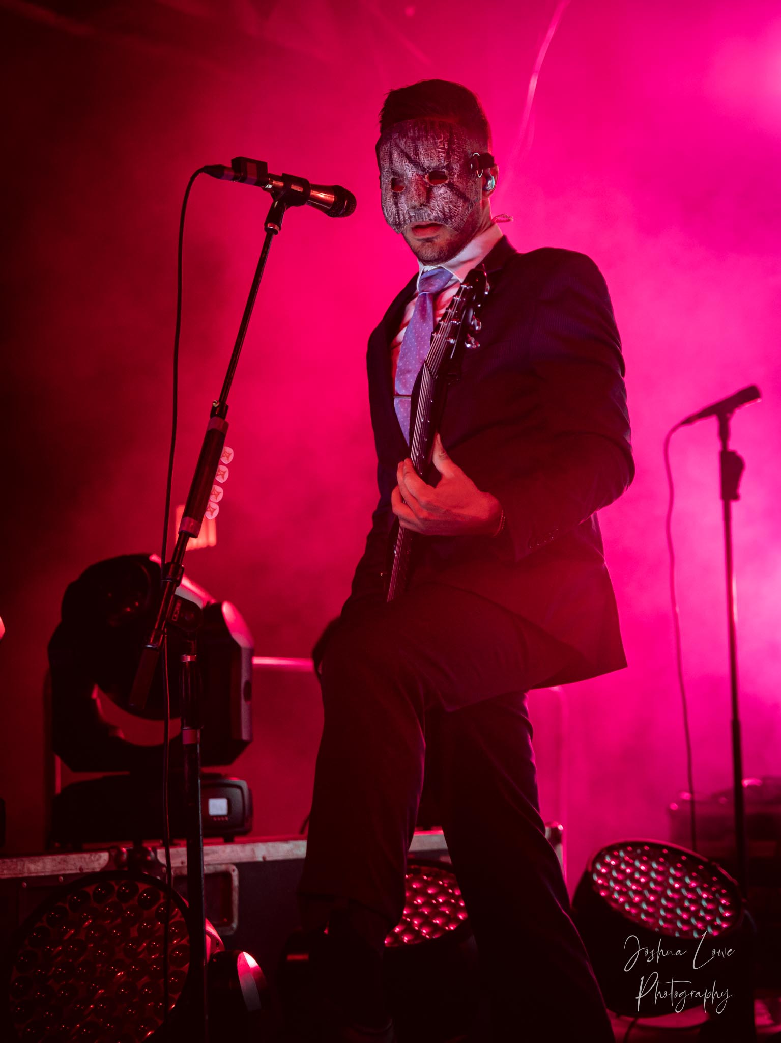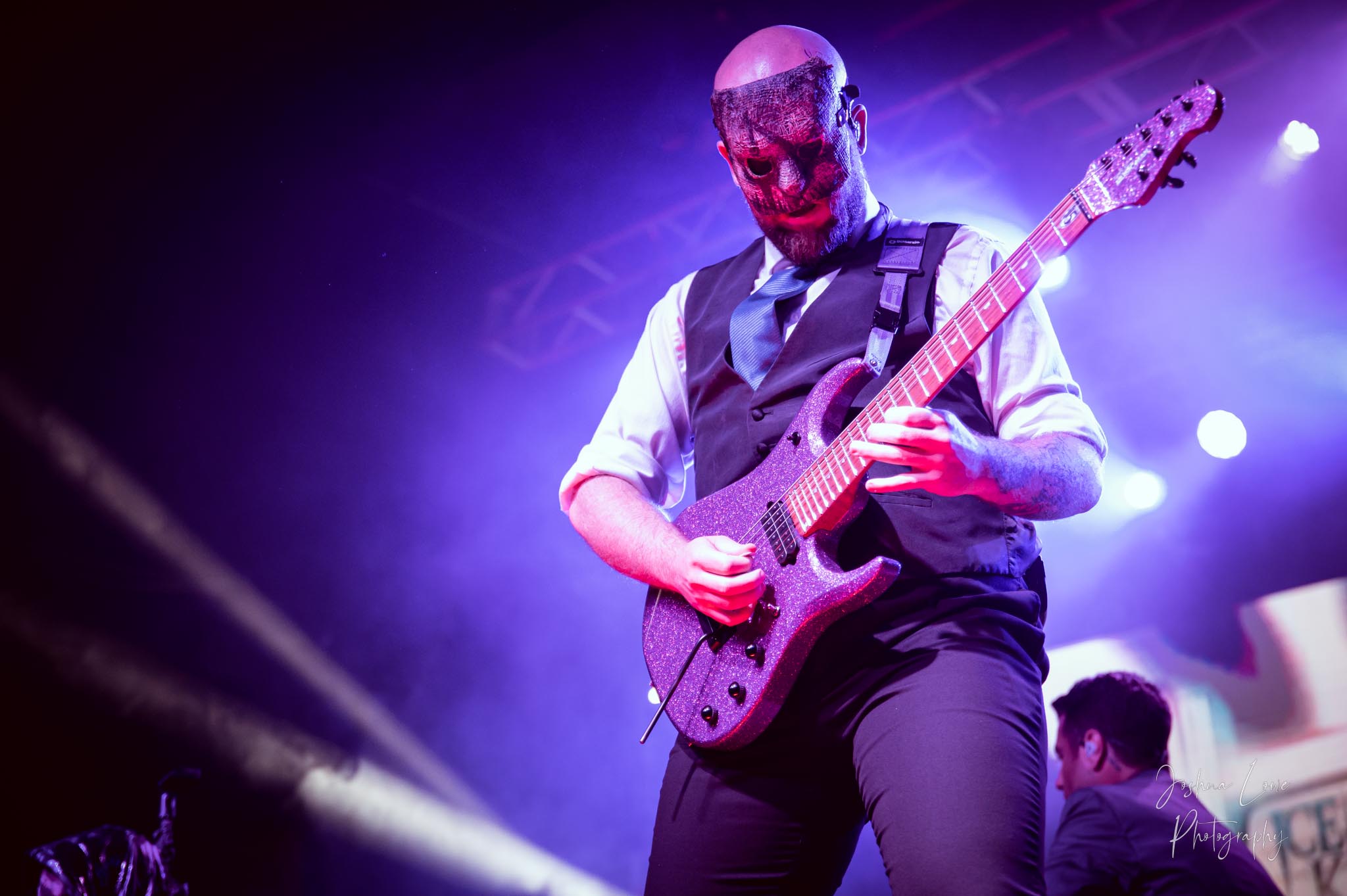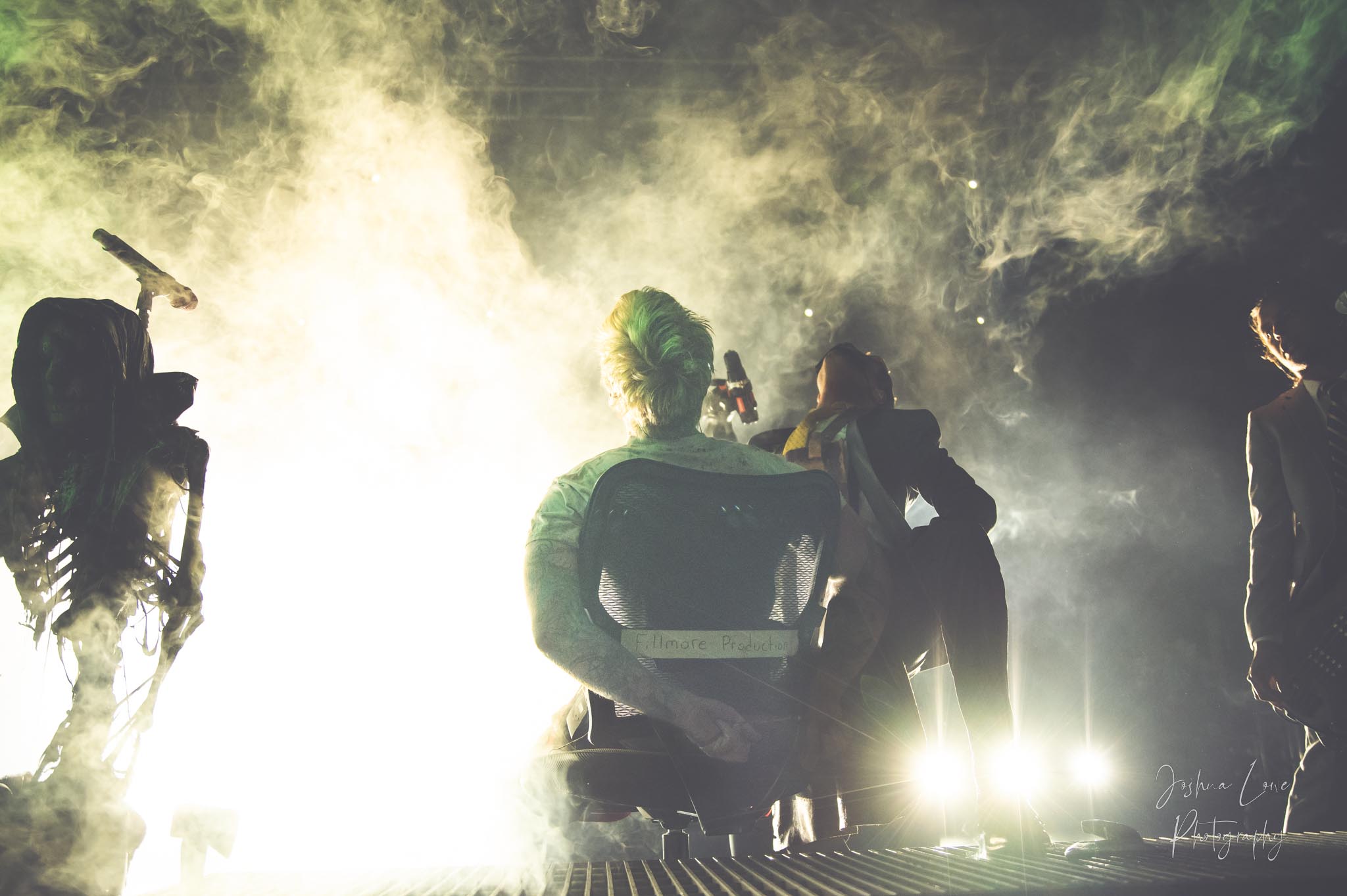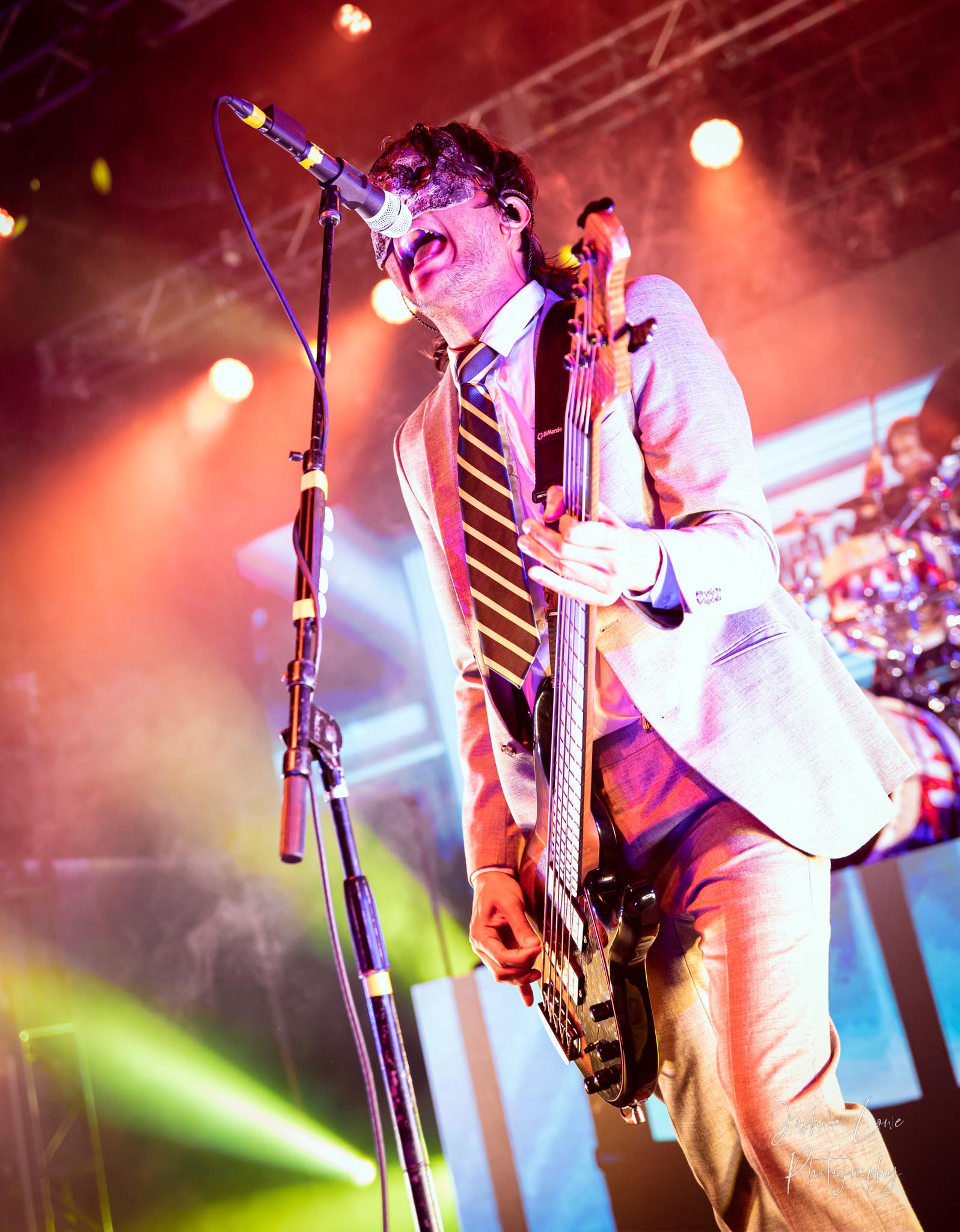 Ice Nine Kills was the last band to hit the stage in Charlotte North Carolina. One thing that caught my attention was the attention to detail INK puts in their show. For example, as any Ice Nine Kills fan would know INK front man Spencer Charnas is a MASSIVE scream fan. They have a song about Scream and you’ll see Ghostface on INK Merch as well. But one thing I noticed and knew the show was about to start, was behind bands before the lights went down. A song was playing over the speakers and any horror fan would recognize the tune, they my not recognize the artist, but they’d know the tune. It’s Nick Cave & The Bad Seeds: Red Right Hand. This song was featured in the original movie. Once the lights went out you hear the opening dialog from the band’s latest album going straight into the band’s title track from the album “Welcome to Horrorwood”. The night was filled with 12 horrifying tracks spanning across the band’s 3 albums.