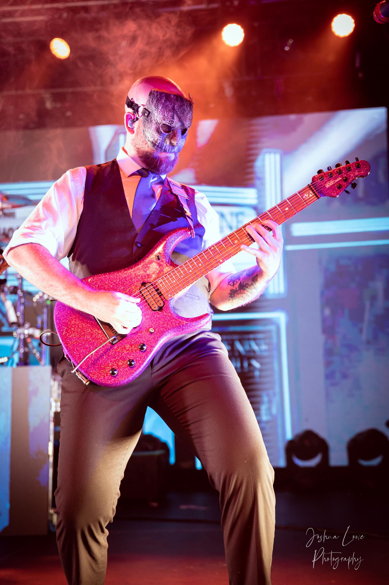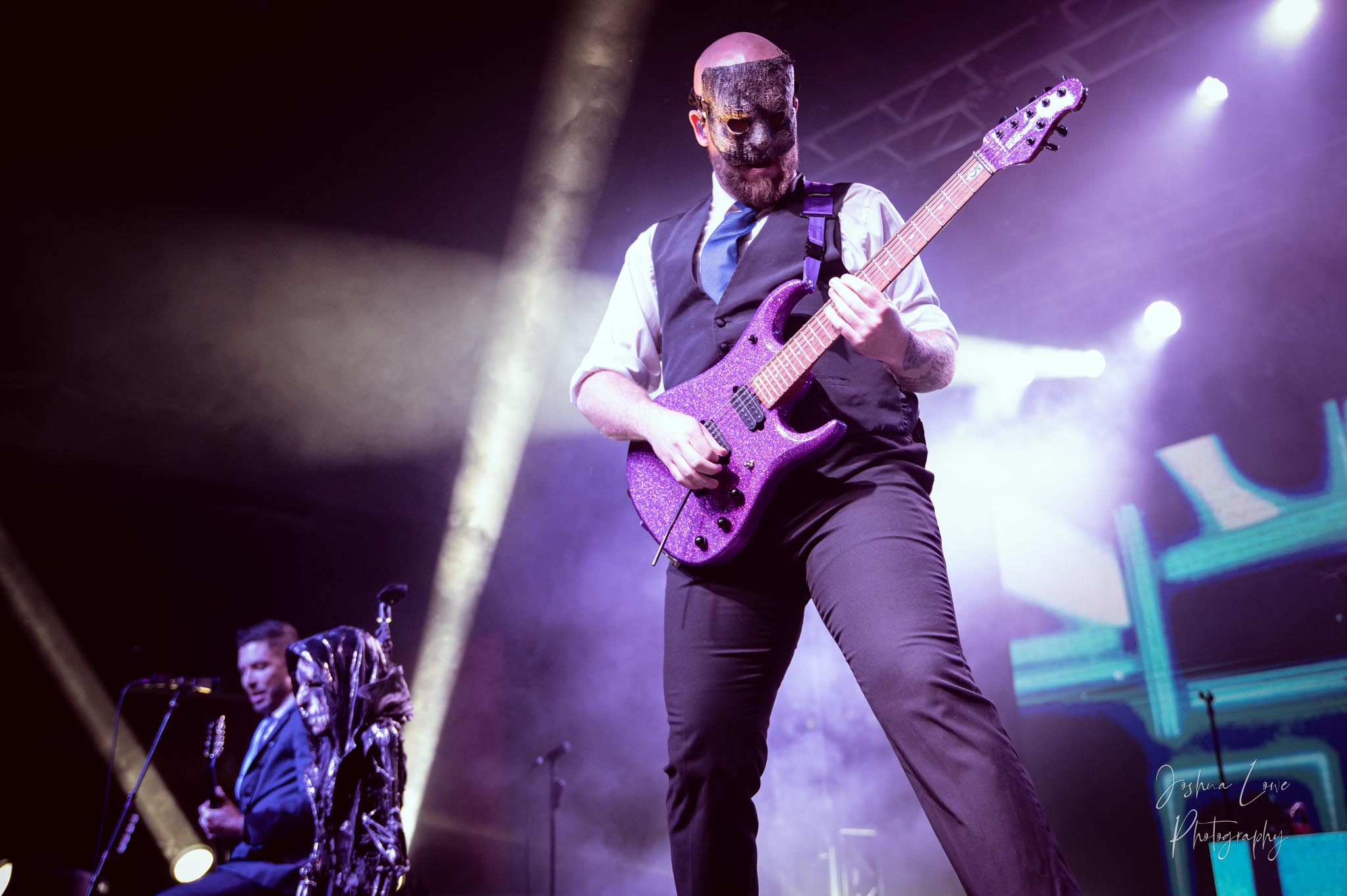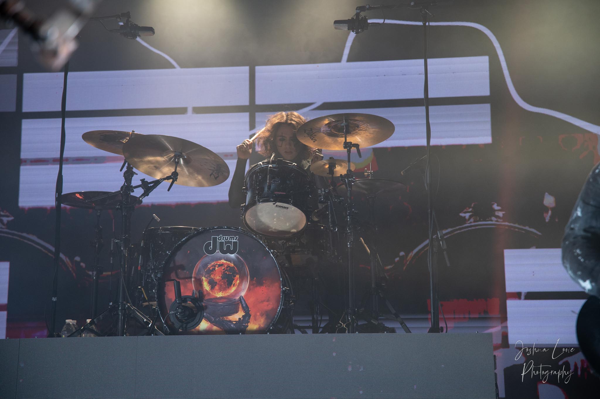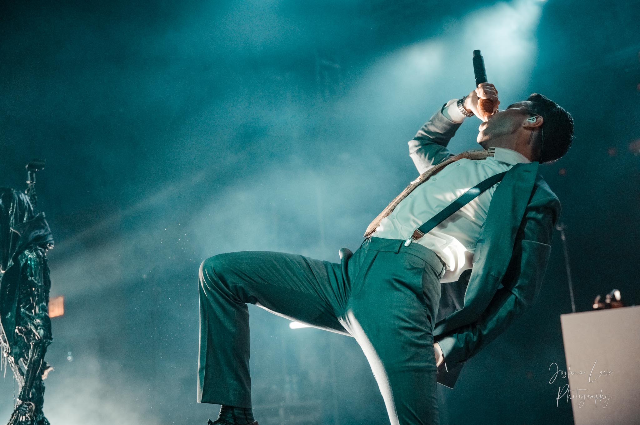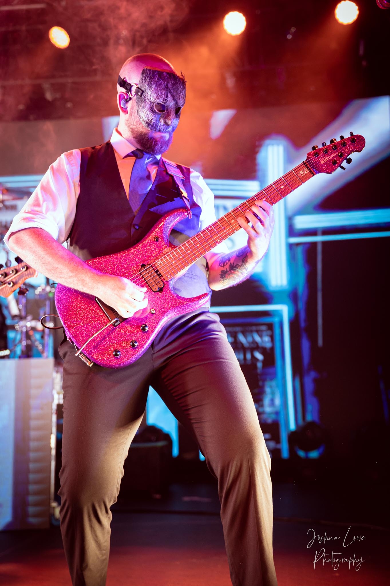 Ice Nine Kills was the last band to hit the stage in Charlotte North Carolina. One thing that caught my attention was the attention to detail INK puts in their show. For example, as any Ice Nine Kills fan would know INK front man Spencer Charnas is a MASSIVE scream fan. They have a song about Scream and you’ll see Ghostface on INK Merch as well. But one thing I noticed and knew the show was about to start, was behind bands before the lights went down. A song was playing over the speakers and any horror fan would recognize the tune, they my not recognize the artist, but they’d know the tune. It’s Nick Cave & The Bad Seeds: Red Right Hand. This song was featured in the original movie. Once the lights went out you hear the opening dialog from the band’s latest album going straight into the band’s title track from the album “Welcome to Horrorwood”. The night was filled with 12 horrifying tracks spanning across the band’s 3 albums.