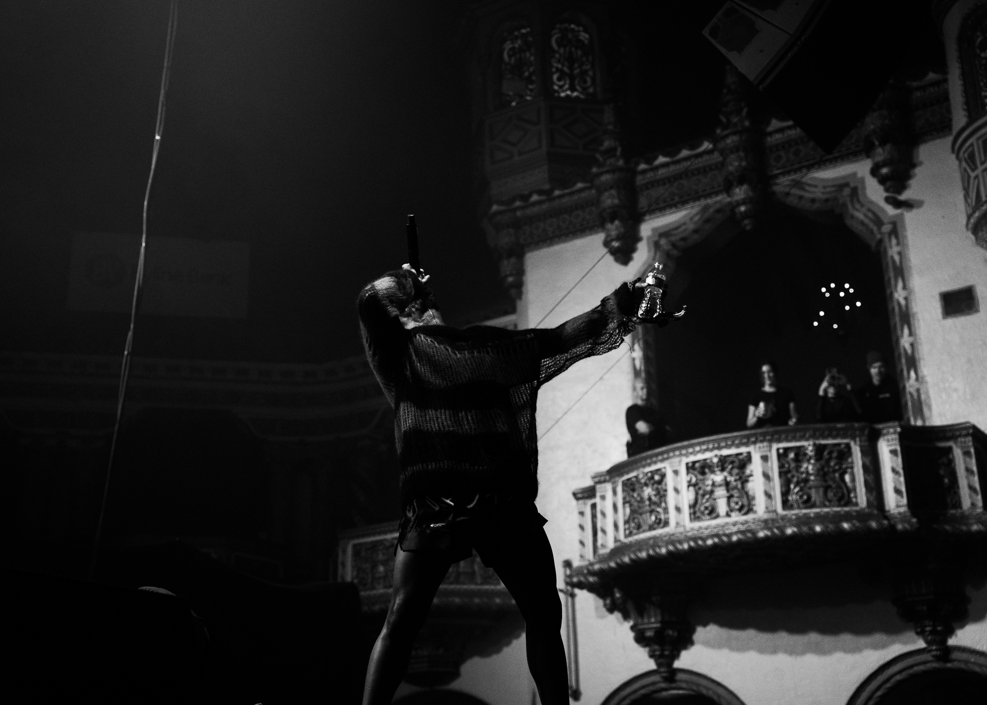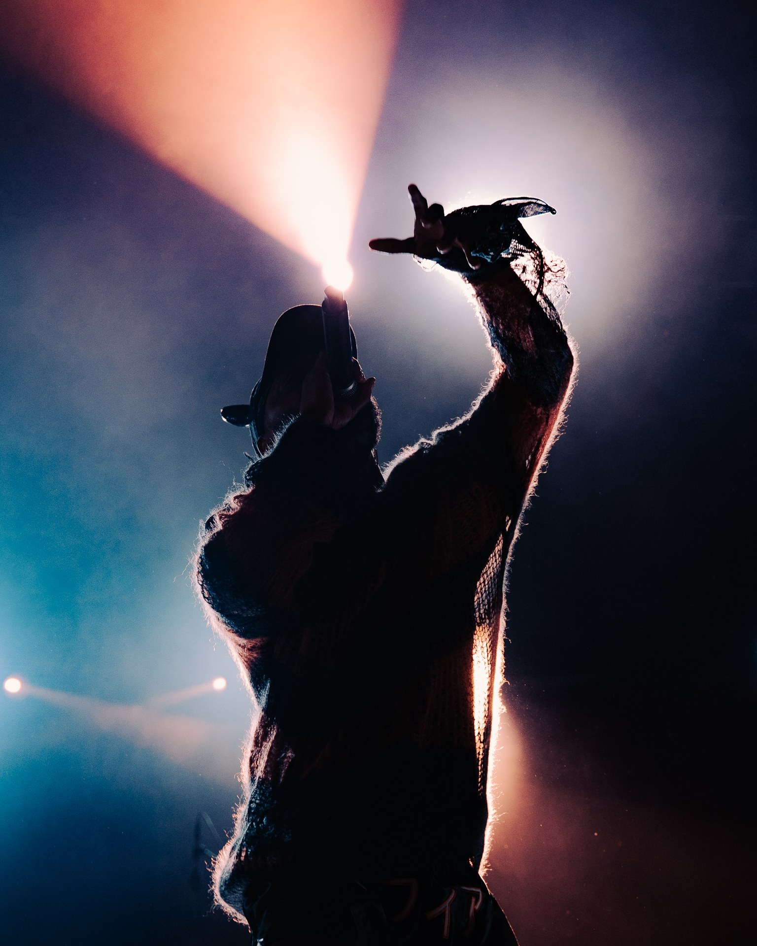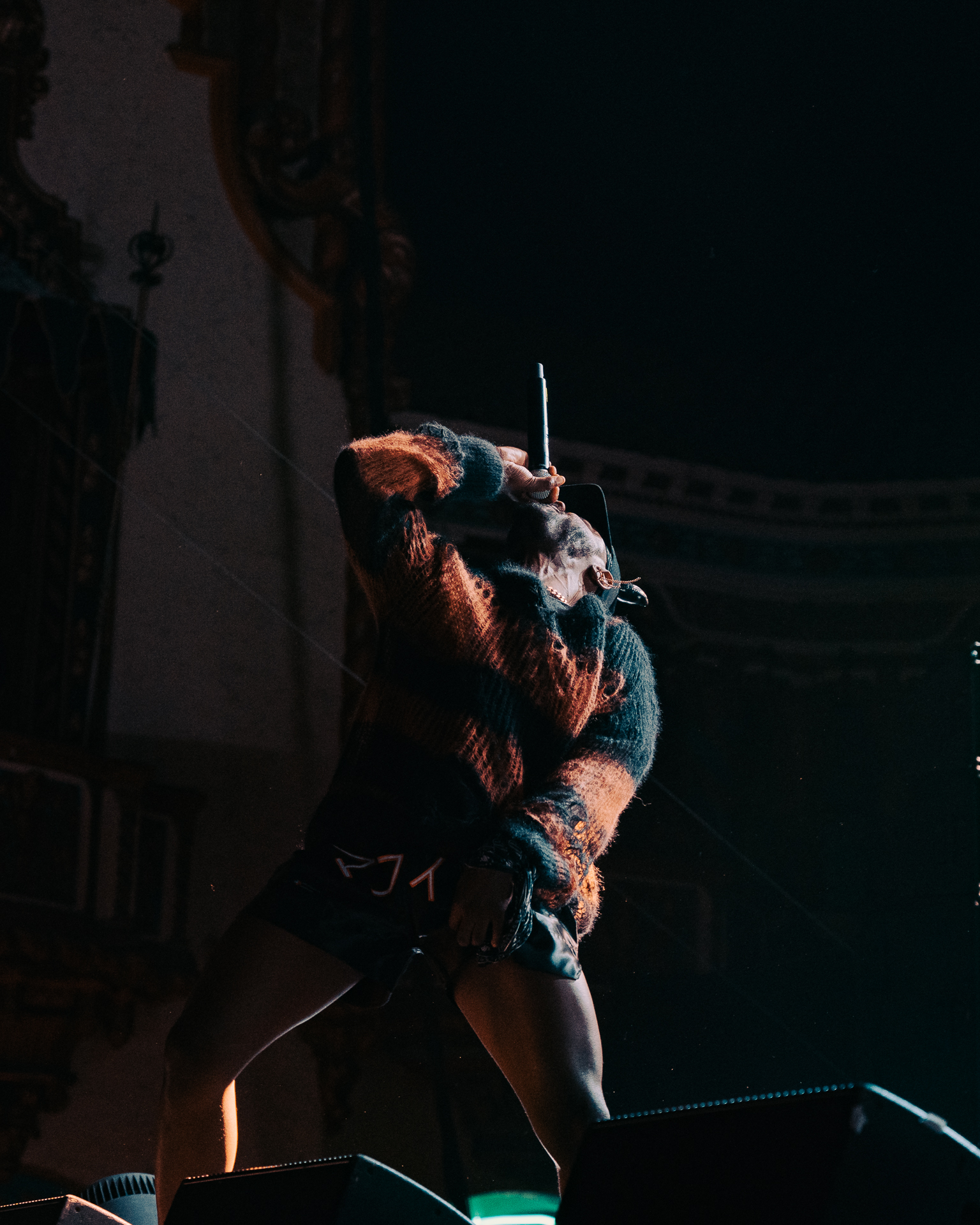 Following the quiet and intimate performance of Snail Mail was the loud and explosive experimental hip-hop artist JPEGMAFIA, also known as “Peggy” for short. An artist known for tongue-in-cheek humor and confrontational lyrics, he begins his performance with his song “Jesus Forgive Me, I Am a Thot” while running from side-to-side on the stage screaming and jumping which the audience soon follows his lead. Most artists may take some short breaks in between songs to rest and regain composure, but JPEGMAFIA keeps his energy at one-hundred percent the entire performance jumping into the crowd, looping from behind the stage and then into the front of it, hopping into the photo pit; it was a non-stop spectacle. Fans were engaged the entire performance and followed every step of the animated artist. Needless to say, a perfect set-up for what was about to follow.