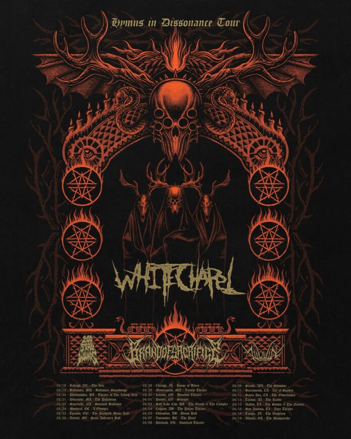 Get Ready! Whitechapel is hitting the road this spring alongside Brand of Sacrifice, 200 Stab Wounds, and Alluvial! This stacked lineup is tearing through the U.S., so mark your calendars and grab tickets while you can. Ticket Presales start Thursday, December 19th at 10:00 am Local time and tickets officially go on sale Friday, December 20th at 10:00 am local. Check out the full list of dates and cites below and get your tickets before they’re gone.