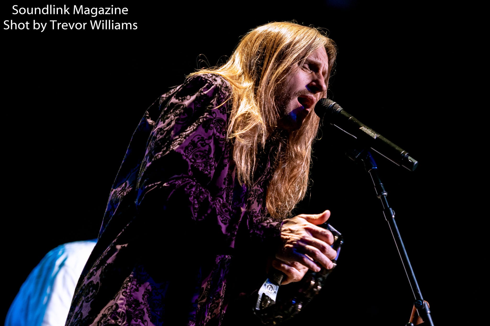 Also, it was accompanied by a bunch of other lights which illuminated the entire theater perfectly to set the mood for each song. The lead singer, Jon Davison, used a wind chime as an interlude from the first song into the second. He had quite the array of percussion instruments including a tambourine, digital drum pad, cowbell, and a stick with bells he would tap to the beat of the song. Practically every song he would grab something from his mic stand set up and add some extra layers to the song during a vocal break.